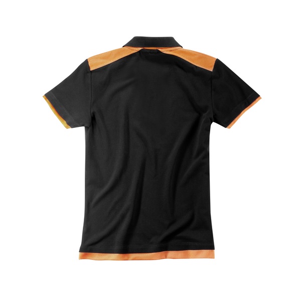 Danno un tocco di sportività le applicazioni in mesh bianche sulle spalle e sull’abbottonatura, così come l’effetto doppio strato in mesh arancione sull’orlo delle maniche e in vita.